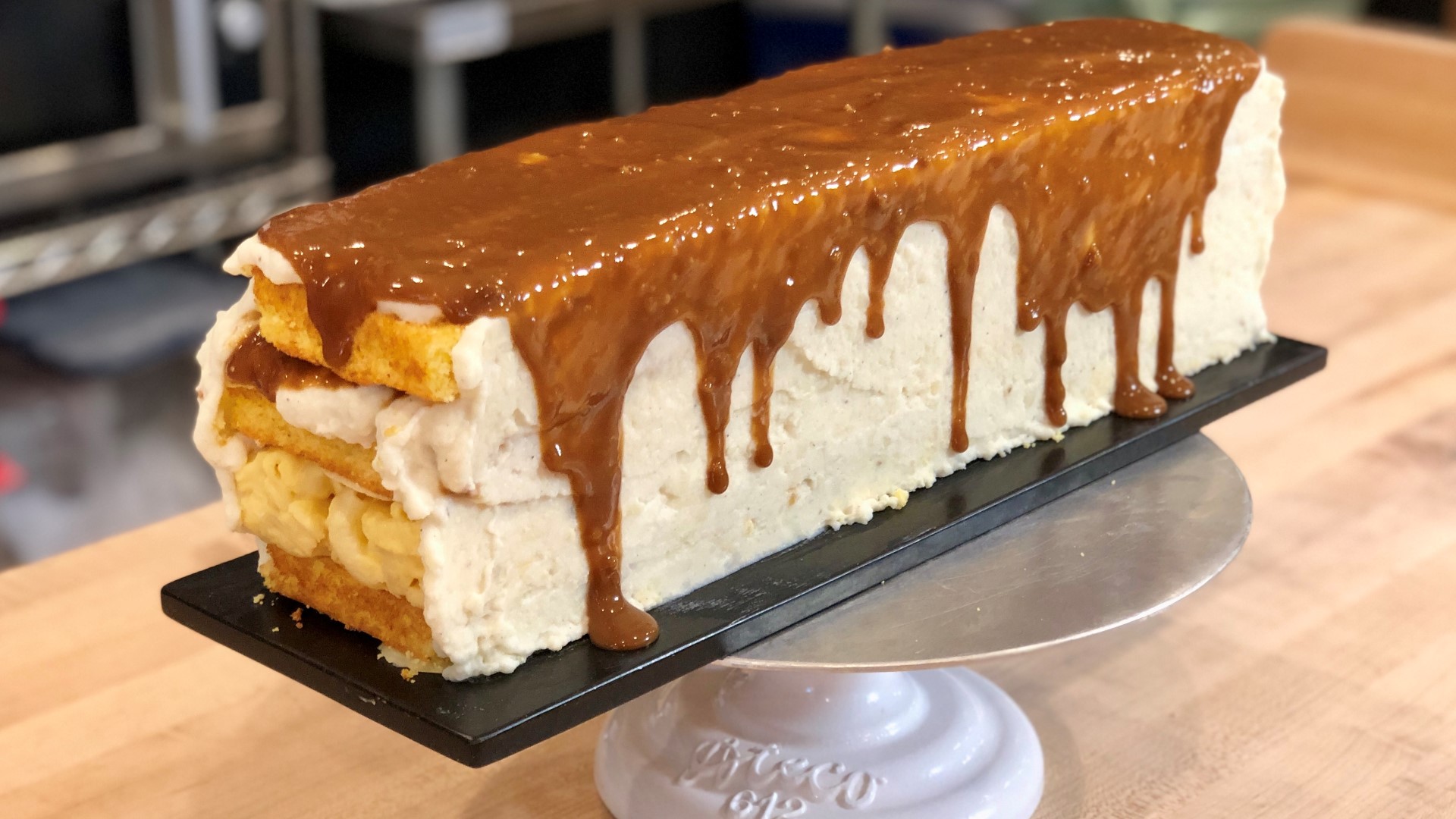 A savory thanksgiving turkey cake, with ground turkey, mashed potatoes, cranberry sauce, sweet it's a savory layer cake composed of an entire turkey dinner: